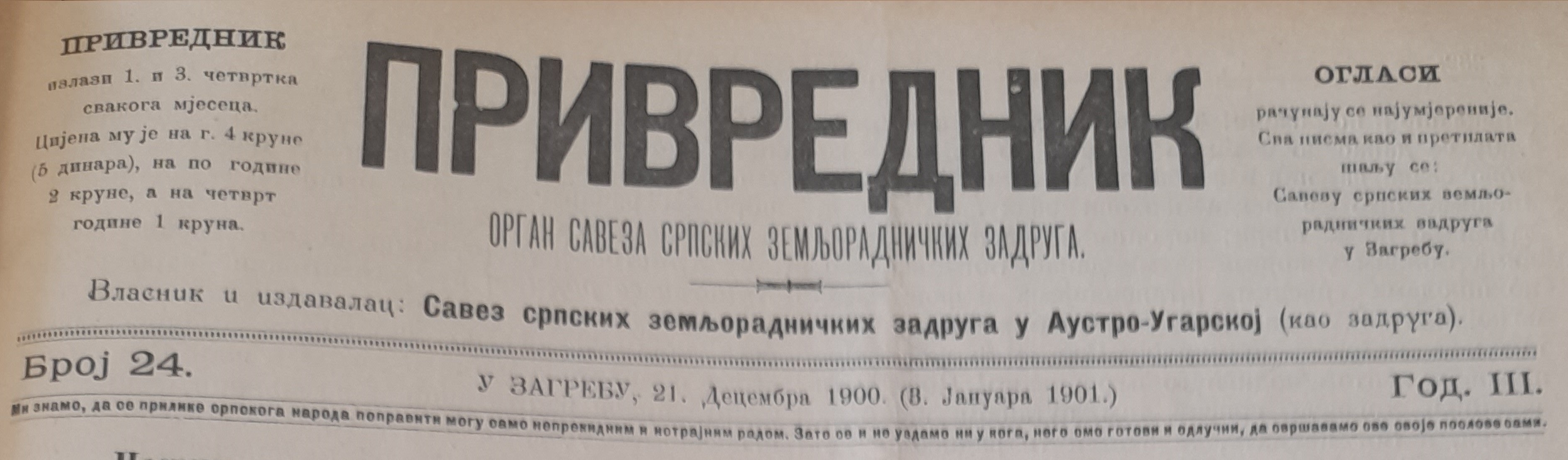Prenosimo tekst koji je originalno objavljen za Božić 1901. godine u listu Privrednik, u cijelosti i bez ikakvih izmjena.
