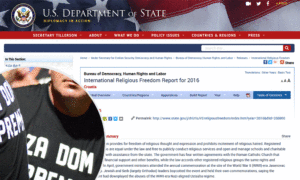 Stejt Department je 15. avgusta ove godine objavio redovni godišnji izveštaj o verskim slobodama u svetu za 2016, uključujući i