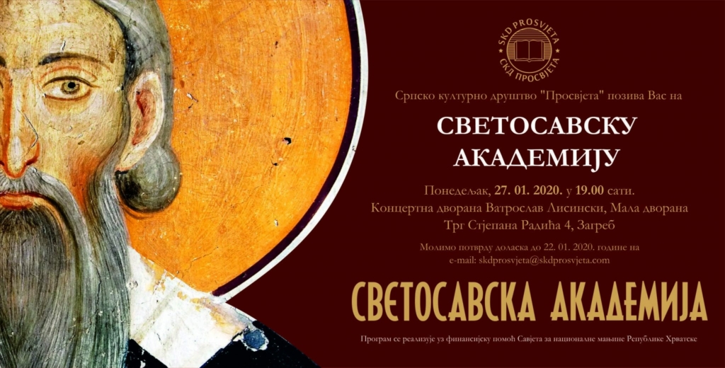 Srpsko kulturno društvo Prosvjeta poziva na Svetosavsku akademiju, koja će se održati u ponedjeljak, 27. januara u 19 sati u