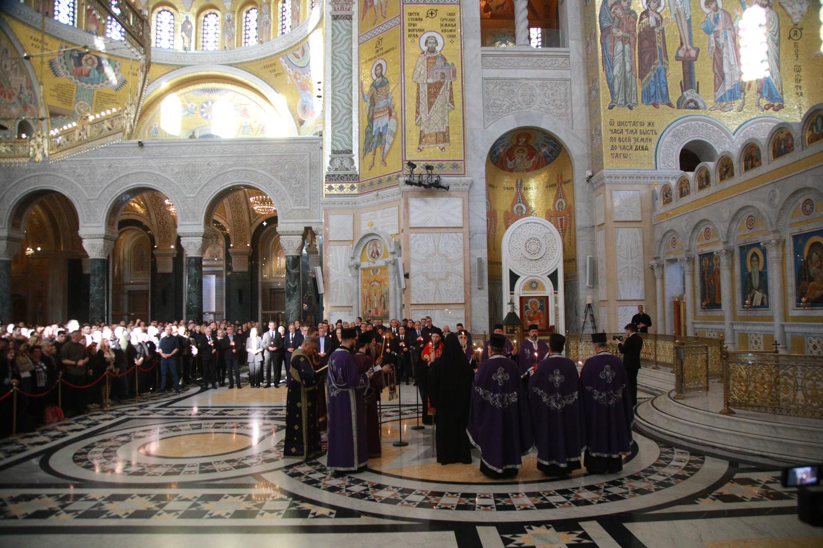 Patrijarh je molitvu za upokojenje pročitao poimenice za svih 16 nastradalih u tragediji 1. novembra prošle godine u padu nadstrešnice u Novom Sadu – za Saru, Valentinu, Đorđa, Milicu, Nemanju, Anđelu, Miloša, Stefana, Sanju, Goranku, Vukašina, Milevu, Đura, Vaska, Anju i Vukašina. „Da im Gospod podari carstvo nebesko, a njihovim srodnicima, svima bliskima i prijateljima, daruje utehu i nadu, vaskrsenje i život večni“, poručio je patrijarh Porfirije.