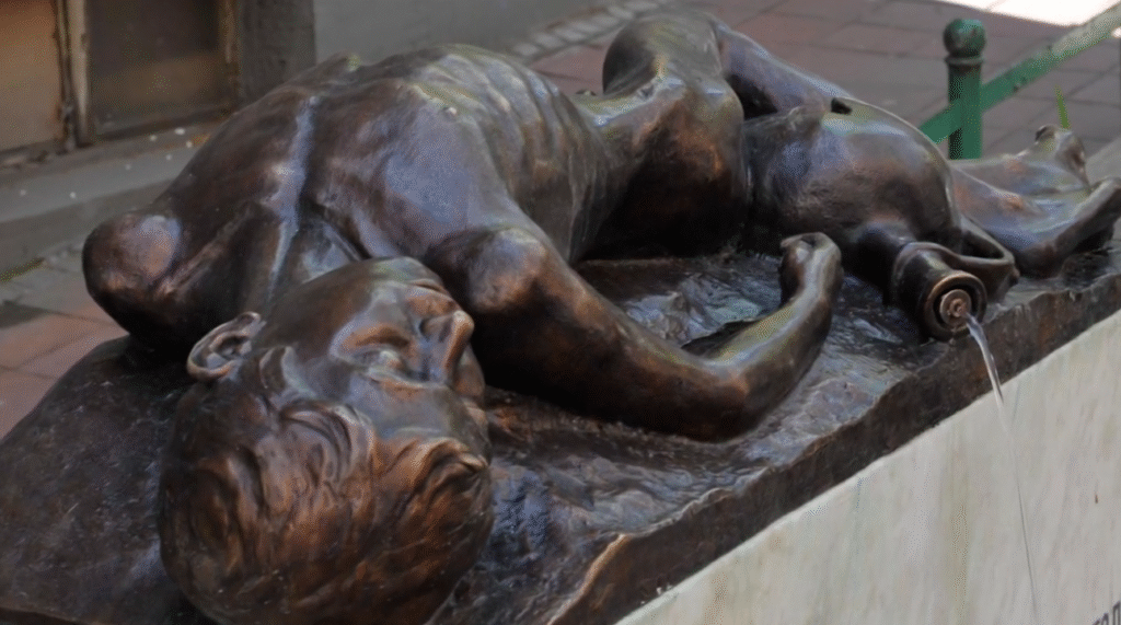 A ako bi čovjek u ono doba još imao sreću i da nekad putuje u glavni grad države, pa prošetao Kalemegdanom, spazio bi lako i začudio se što usred centralnog i najvećeg beogradskog parka vidi potpuno istu skulpturu. Poslije smo tek saznavali da je obje radio isti kipar, dakako. To što se identična skulptura u dva grada različito zove, što ima drugačiji naslov, s vremenom je sve više pridodavalo teškim i nelagodnim ironijama koje su se između dva grada u sljedećim godinama i decenijama samo množile. Ime zagrebačke skulpture od jedne je riječi – „Borba“, a beogradske „Zlosrećni ribar“. Danas i to djeluje kao dodatna višeslojna ironična metafora mnogočega. Obje skulpture, odnosno original i novi odljev napravio je naravno jedan umjetnik – kipar, odnosno vajar, Simeon Roksandić.