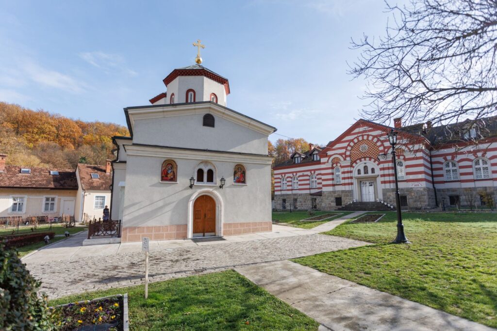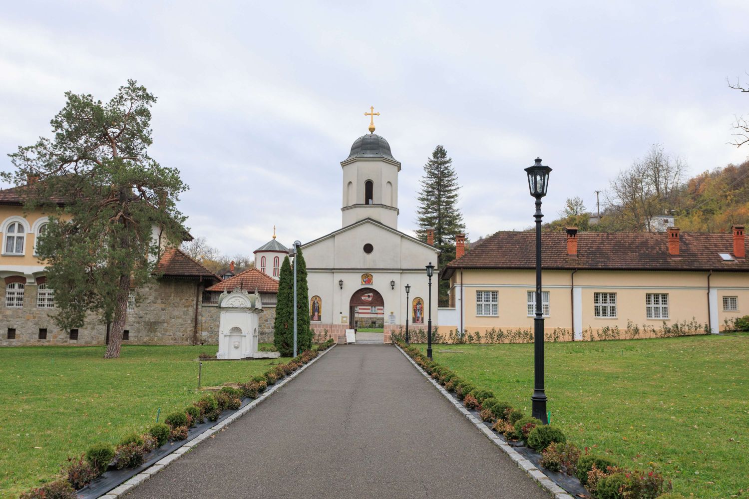 Glavna manastirska crkva posvećena je Sv. arhangelima Mihailu i Gavrilu, a središnja godišnja crkvena slava je Velika Gospojina, 28. augusta, kada se zaista silan svijet sakuplja u manastirsku portu. Za posjetu svakom pravoslavnom manastiru treba ponešto poznavati lokalni jezik vezan za konkretnu svetinju. Recimo, manastirska Crkva Sv. arhangela Mihaila i Gavrila, koja potiče iz otprilike 15. vijeka, građena je u stilu tzv. Moravske škole, što bi značilo da je osnova crkve trolist (trikonhos), da crkva ima dvije kupole, da je dekoracija fasade polihromna, što znači da je ofarbana u raznim bojama. Način zidanja je koncipiran po formuli jedan red kamena i tri opeke, a na fasadi se javlja horizontalna i vertikalna podjela predmeta i ukrasa. Ukrasi su u vidu šahovskih polja, lozica (ukrasnih biljki) i rozeta (okruglih, cvjetnih ukrasa). Daljnji manastirski leksikon pojmova koji je zaista bogat, slojevit i često nerazumljiv laicima, spada već u kategoriju historije umjetnosti, jer se manastir nadograđivao i dobivao nove vizure, već u odnosu na prilike, stilove i vremenske epohe.